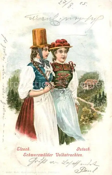 Elzach Schwarzwaelder Volkstrachten Kuenstlerkarte Elzach postalisch gelaufen 1905 Erhaltung siehe scans [FriedD77] Frierer