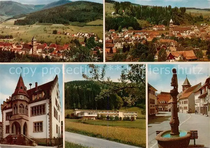 AK / Ansichtskarte Elzach Teilansichten Rathaus Sanatorium Hauptstrasse Brunnen Elzach