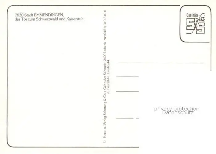 Emmendingen Brunnen Marktplatz Innenstadt Torbogen Tor zu Schwarzwald und Kaiserstuhl Wappen Emmendingen postalisch nicht gelaufen nach 1965 Erhaltung siehe scans [FriedD77] Frierer