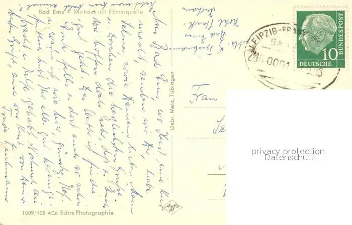 Ems_Bad Kurhaus mit Roemerquelle Ems_Bad postalisch gelaufen 1955 Bahnpost Erhaltung siehe scans [KathaD81] Bahnpost Kathoren
