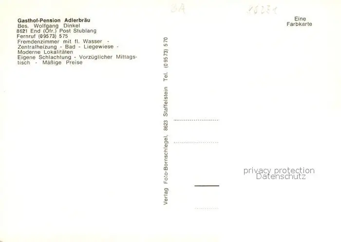 End Gasthof Pension Adlerbraeu Gastraeume End postalisch nicht gelaufen nach 1965 Erhaltung siehe scans [WerneD78] WernPID7