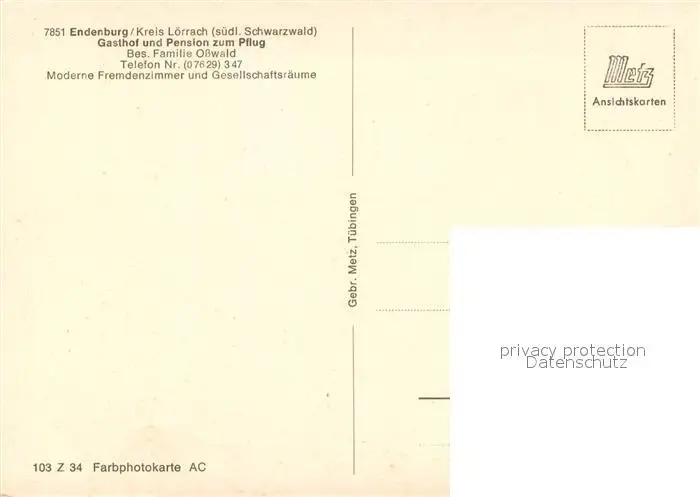 Endenburg Gasthof Pension zum Pflug Endenburg postalisch nicht gelaufen nach 1965 Erhaltung siehe scans [WerneD78] WernPID7