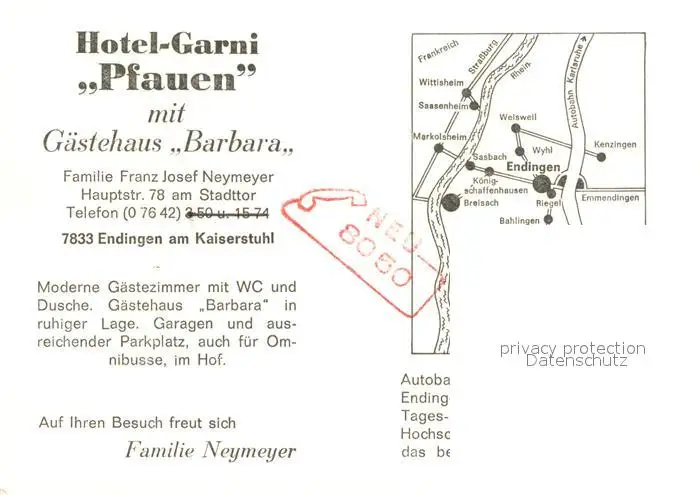 Endingen_Kaiserstuhl Hotel Garni Pfauen Endingen_Kaiserstuhl postalisch nicht gelaufen nach 1965 Erhaltung siehe scans [WerneD78] WernPID7