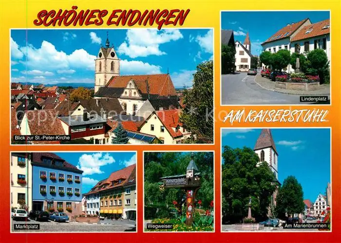 AK / Ansichtskarte Endingen_Kaiserstuhl St Peter Kirche Lindenplatz Marktplatz Wegweiser Marienbrunnen Endingen_Kaiserstuhl