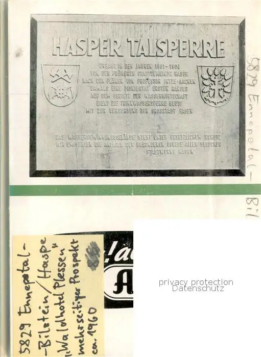 Ennepetal Waldhotel Plessen an der Hasper Talsperre Ennepetal postalisch nicht gelaufen 1960 Erhaltung siehe scans [WerneD78] WernPID7