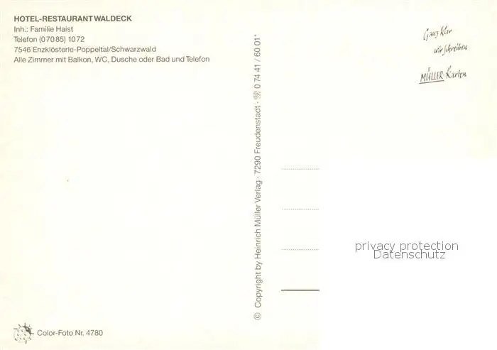 Enzkloesterle Hotel Restaurant Waldeck Enzkloesterle postalisch nicht gelaufen nach 1965 Erhaltung siehe scans [WerneD78] WernPID7