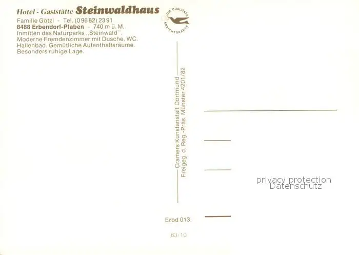 Erbendorf Hotel-Gaststaette Steinwaldhaus Aussenansicht Erbendorf postalisch nicht gelaufen nach 1965 Erhaltung siehe scans [LiesaD40] LiesID40
