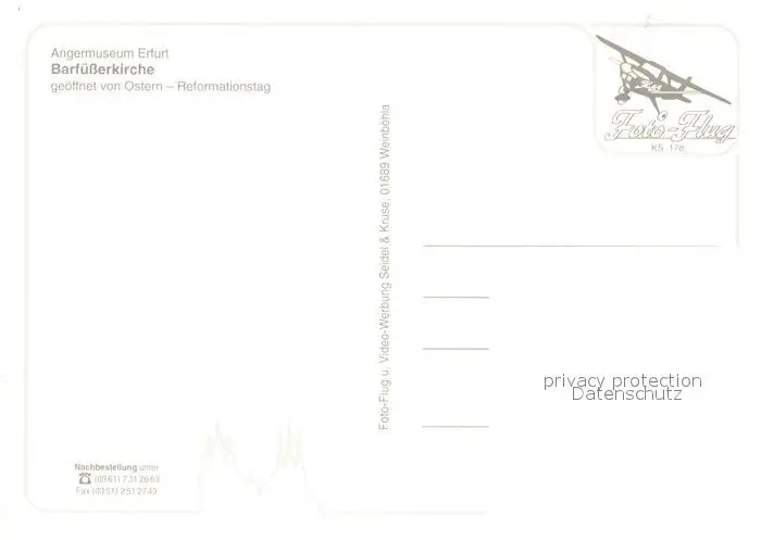Erfurt Angermuseum Barfuesserkirche Erfurt postalisch nicht gelaufen nach 1965 Fliegeraufnahme Erhaltung siehe scans [FriedD77] Fliegeraufnahme Frierer