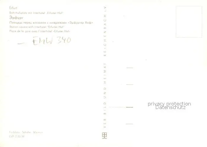 Erfurt Kategorie Alte Ansichtskarten Postkarten bx50310 Erfurt Bahnhofsplatz mit Interhotel Erfurter Hof Erfurt postalisch nicht gelaufen nach 1965 Erhaltung siehe scans [FriedD77]
