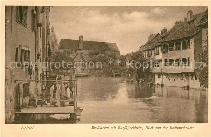 AK / Ansichtskarte Erfurt Breitstrom mit Barfuesserkirche Blick von Rathausbruecke Heimatschutzpostkarte Erfurt