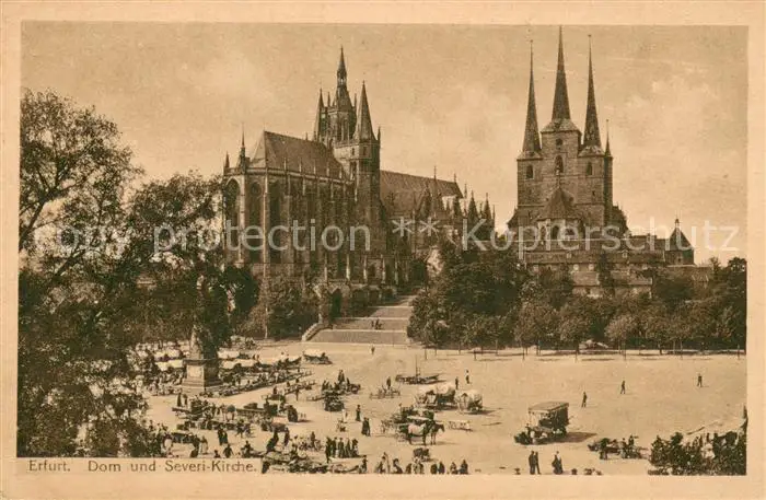Erfurt Dom und Severikirche Marktplatz Pferdefuhrwerke Denkmal Erfurt postalisch nicht gelaufen bis 1920 Erhaltung siehe scans [FriedD77] Frierer