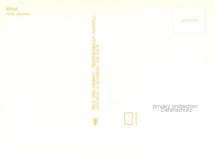 Erfurt Hotel Kosmos Erfurt postalisch nicht gelaufen 1989 Erhaltung siehe scans [FriedD77] Frierer