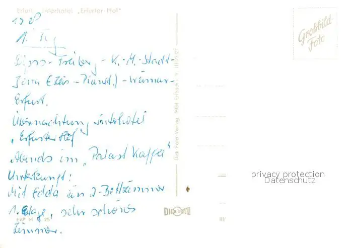 Erfurt Interhotel Erfurter Hof Erfurt postalisch nicht gelaufen 1921-1965 Erhaltung siehe scans [LiesaD40] LiesID40
