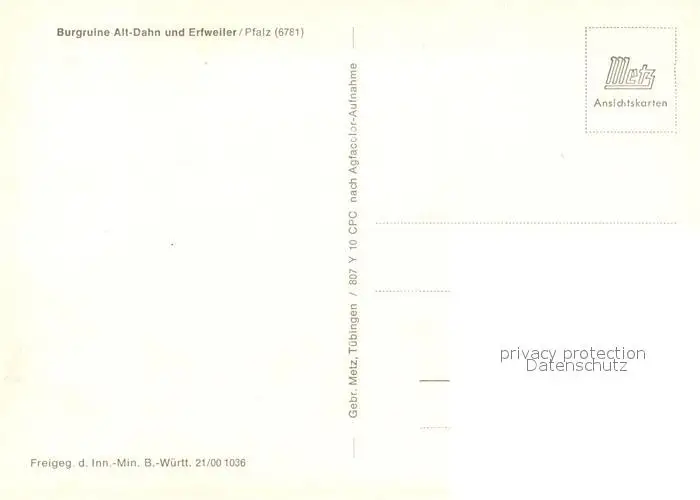Erfweiler-Ehlingen Burgruine Alt Dahn Fliegeraufnahme Erfweiler-Ehlingen postalisch nicht gelaufen nach 1965 Erhaltung siehe scans [WerneD78] WernPID7