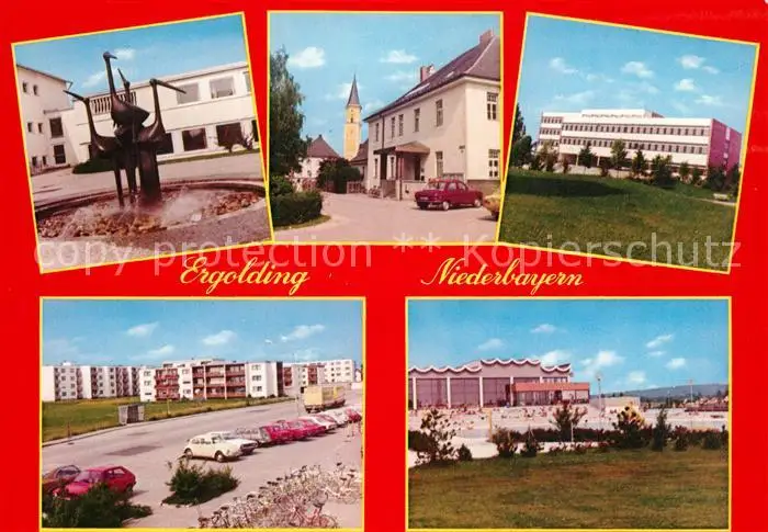 Ergolding Brunnen Ortspartie Schule Wohnsiedlung Ergolding postalisch nicht gelaufen nach 1965 Erhaltung siehe scans [FriedD77] Frierer