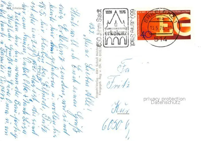 Erkelenz Kategorie Alte Ansichtskarten Postkarten bx55326 Erkelenz Fliegeraufnahme mit Kirche Erkelenz postalisch gelaufen 1976 Erhaltung siehe scans [WerneD78]