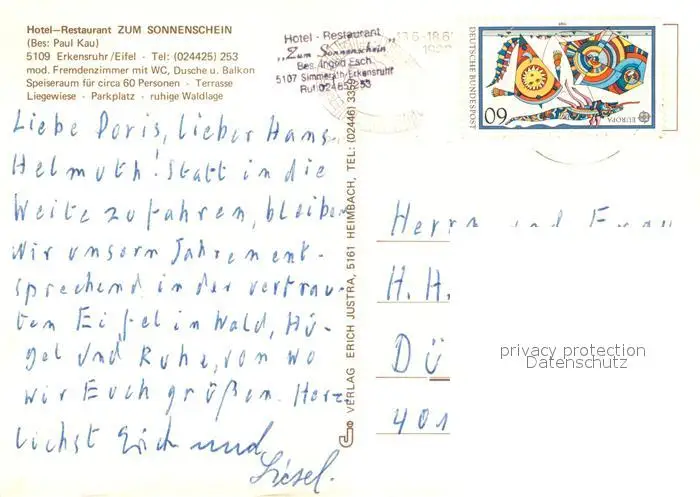 Erkensruhr Kategorie Alte Ansichtskarten Postkarten bx45543 Erkensruhr Hotel Restaurant zum Sonnenschein Erkensruhr postalisch gelaufen nach 1965 Erhaltung siehe scans [LiesaD40]