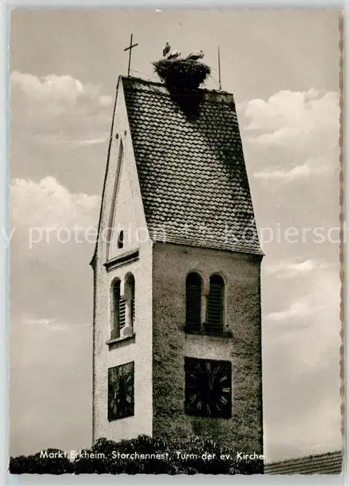 Erkheim Storchennest Turm der ev Kirche Erkheim postalisch nicht gelaufen nach 1965 Verlagsrohabzug (keine Postkartenrueckseite) Erhaltung siehe scans [WerneD78] Verlagsrohabzug (keine Postkartenrueckseite) WernPID7