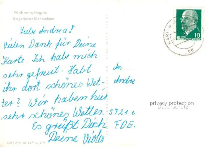 Erlabrunn_Erzgebirge Bergarbeiter Krankenhaus Erlabrunn_Erzgebirge postalisch gelaufen 1968 Erhaltung siehe scans [FriedD77] Frierer