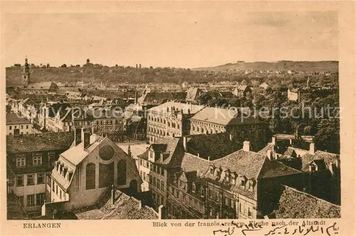 Erlangen Altstadt von der reformierten Kirche Erlangen postalisch nicht gelaufen 1921-1965 Erhaltung siehe scans [KathaD81] Kathoren