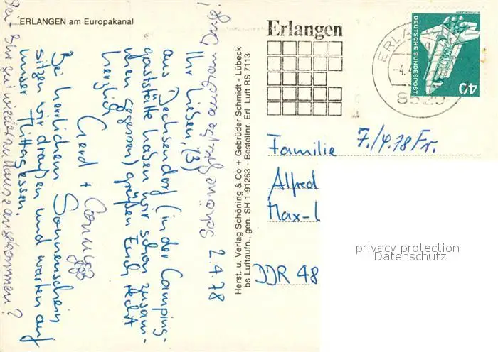 Erlangen Fliegeraufnahme Erlangen postalisch gelaufen 1978 Erhaltung siehe scans [NatalD47] NataID47