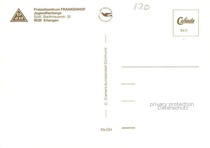 Erlangen Freizeitzentrum Frankenhof Jugendherberge Aufenthaltsraum Erlangen postalisch nicht gelaufen nach 1965 Erhaltung siehe scans [WerneD78] WernPID7