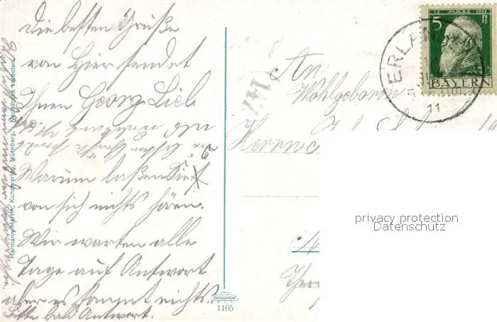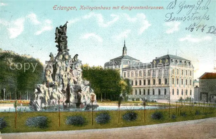 Erlangen Kollegienhaus mit Emigrantenbrunnen Erlangen postalisch gelaufen bis 1920 Erhaltung siehe scans [LiesaD40] LiesID40