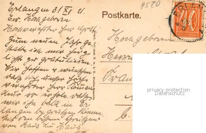 Erlangen Luitpoldstrasse Erlangen postalisch gelaufen 1921 Erhaltung siehe scans [KathaD81] Kathoren