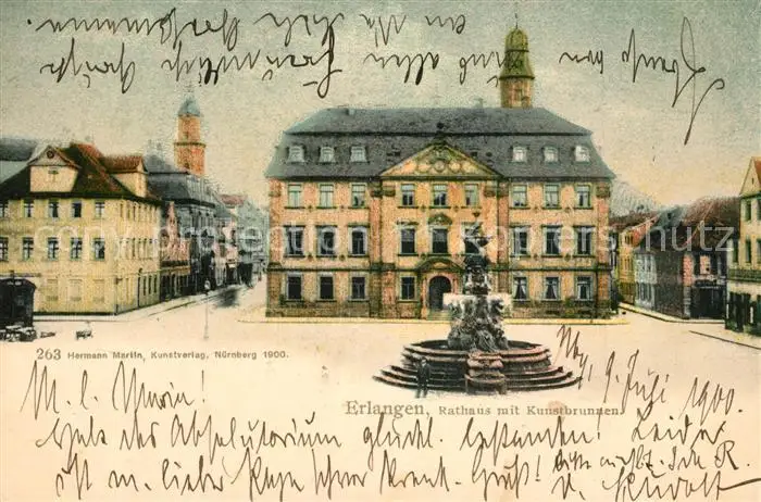 Erlangen Rathaus Kunstbrunnen Erlangen postalisch gelaufen 1900 Erhaltung siehe scans [KathaD81] Kathoren