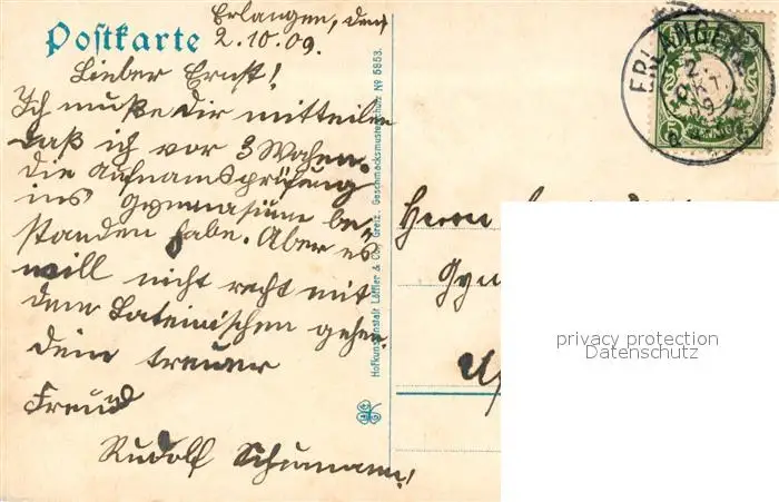 Erlangen Schlossgarten Erlangen postalisch gelaufen 1909 Erhaltung siehe scans [WerneD78] WernPID7