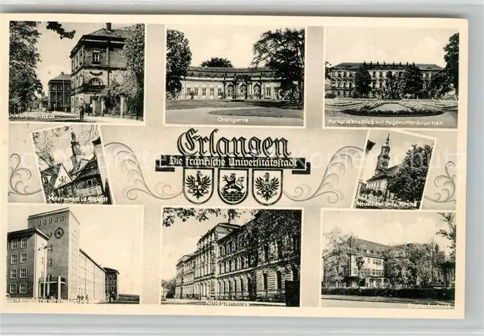 AK / Ansichtskarte Erlangen Unikrankenhaus Orangerie Markgrafenschloss Malerwinkel Neustaedter Dom Kirche Kollegienhaus Studentenhaus Erlangen
