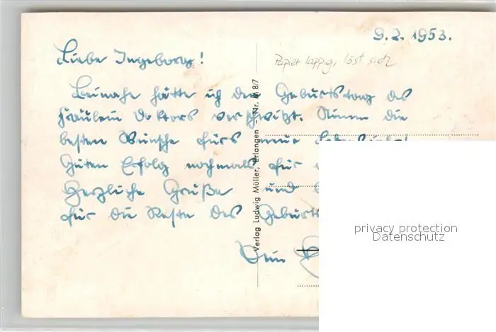 Erlangen Unikrankenhaus Orangerie Markgrafenschloss Malerwinkel Neustaedter Dom Kirche Kollegienhaus Studentenhaus Erlangen postalisch nicht gelaufen 1953 Erhaltung siehe scans [WerneD78] WernPID7