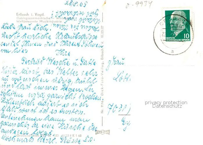 Erlbach_Vogtland Gemeindeamt Panoramen Erlbach_Vogtland postalisch gelaufen 1969 Erhaltung siehe scans [KathaD81] Kathoren