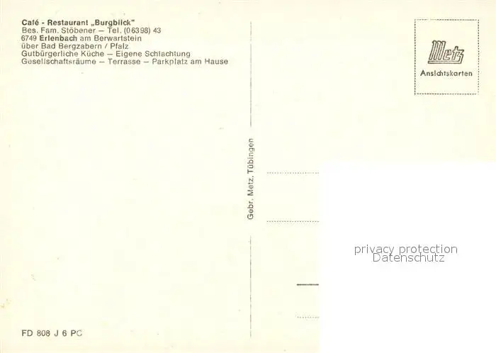 Erlenbach_Bad_Bergzabern Cafe Restaurant Burgblick Kamin Erlenbach_Bad_Bergzabern postalisch nicht gelaufen nach 1965 Erhaltung siehe scans [FriedD77] Frierer