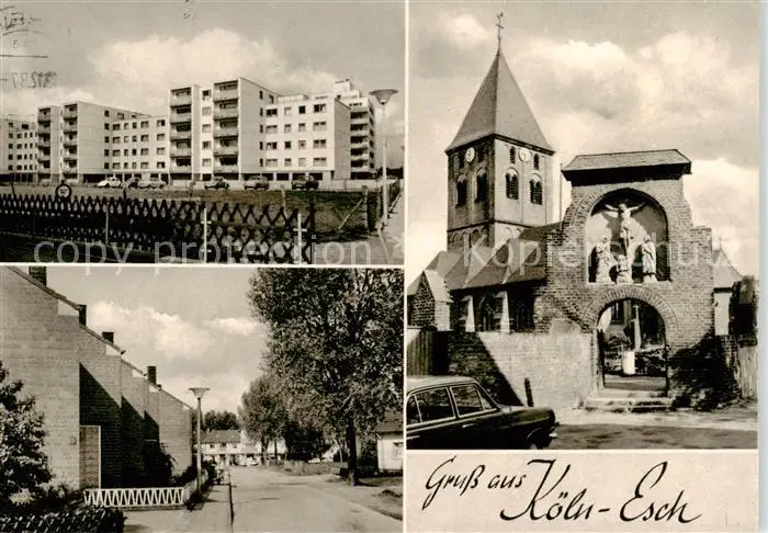 Esch_Frechen Wohnsiedlung Kirche Esch Frechen postalisch gelaufen 1987 Erhaltung siehe scans [FriedD77] Frierer