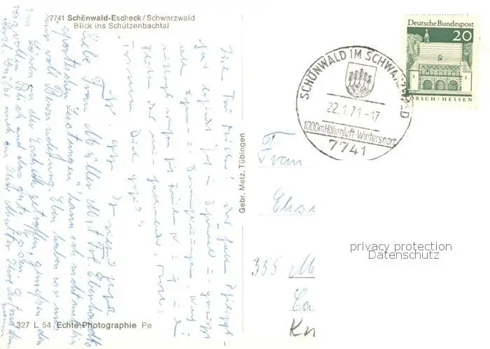 Escheck Blick ins Schuetzenbachtal Escheck postalisch gelaufen 1971 Erhaltung siehe scans [WerneD78] WernPID7