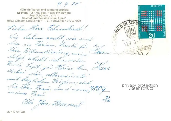 Escheck 0 Escheck postalisch gelaufen 1970 Erhaltung siehe scans [FriedD77] Frierer