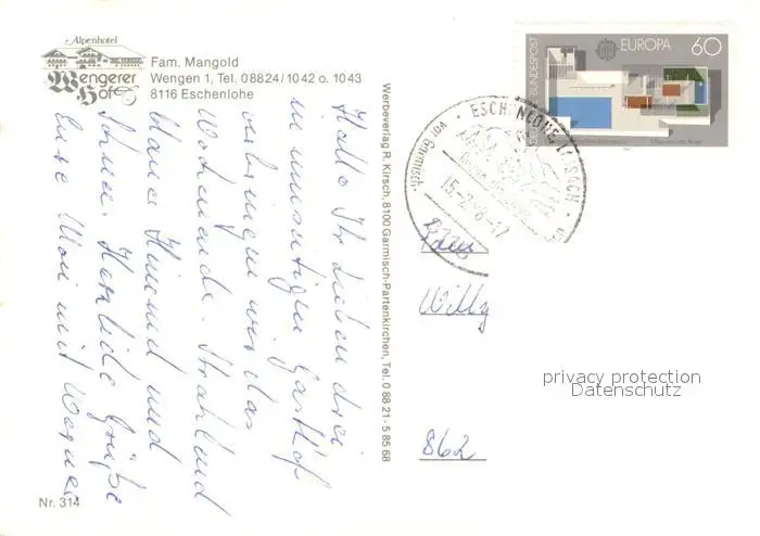 Eschenlohe Wengererhof Eschenlohe postalisch gelaufen 1988 Erhaltung siehe scans [WerneD78] WernPID7