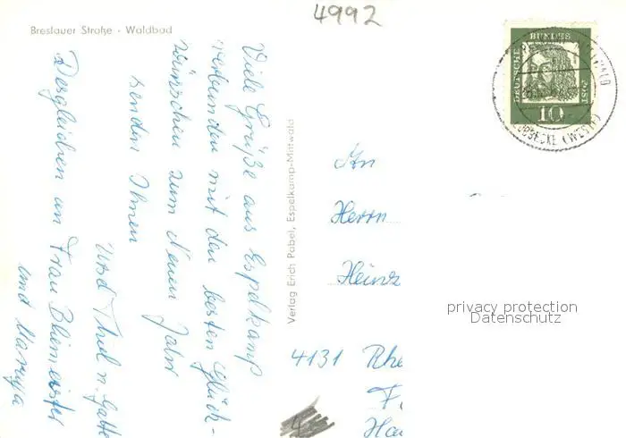 Espelkamp Breslauer Strasse und Waldbad Espelkamp postalisch gelaufen 1968 Erhaltung siehe scans [LiesaD40] LiesID40