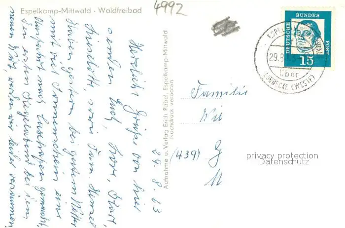 Espelkamp Waldfreibad Espelkamp postalisch gelaufen 1963 Erhaltung siehe scans [LiesaD40] LiesID40