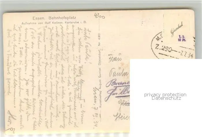 Essen_Ruhr Bahnhofsplatz Essen_Ruhr postalisch gelaufen 1934 Bahnpost Erhaltung siehe scans [FriedD77] Bahnpost Frierer