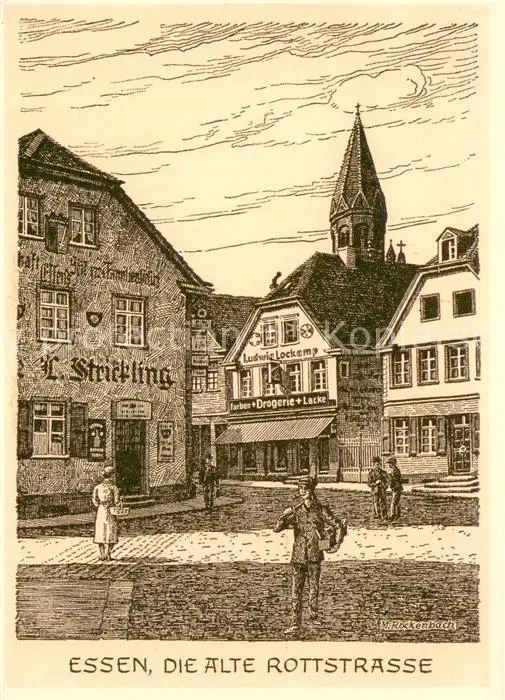 Essen__Ruhr Die Alte Rottstrasse Zeichnung postalisch nicht gelaufen 1921-1965 Erhaltung siehe scans [FriedD77] Frierer