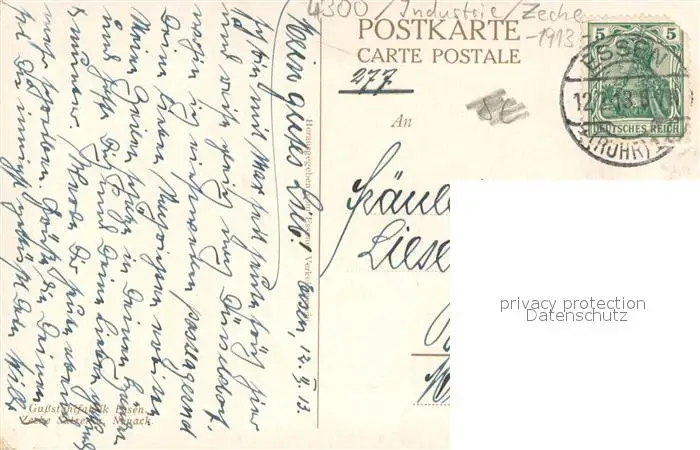 Essen__Ruhr Industrie Zeche Gussstahlfabrik postalisch gelaufen 1913 Erhaltung siehe scans [LiesaD40] LiesID40