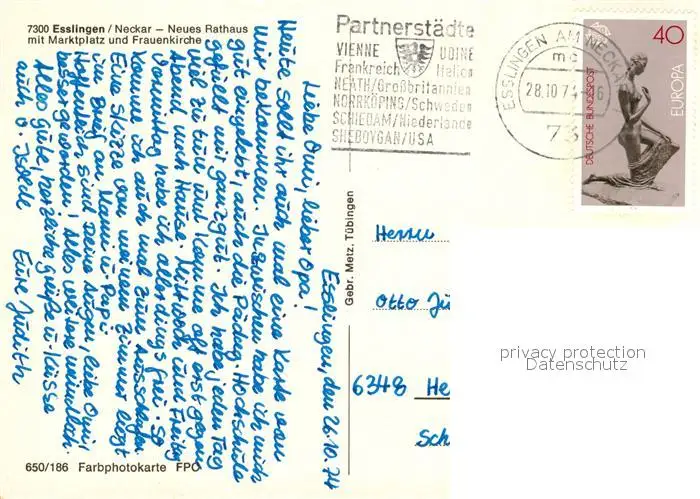 Esslingen_Neckar Neues Rathaus Marktplatz Frauenkirche Esslingen Neckar postalisch gelaufen 1974 Erhaltung siehe scans [FriedD77] Frierer