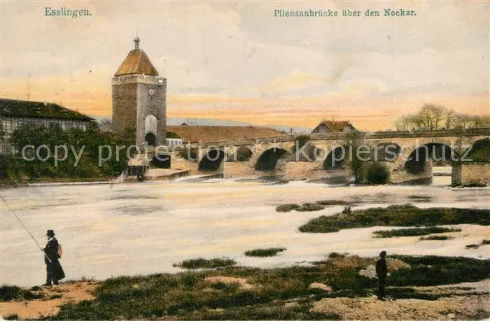 Esslingen_Neckar Pliensaubr?cke ?ber Neckar Esslingen Neckar postalisch gelaufen 1905 Erhaltung siehe scans [LiesaD40] LiesID40