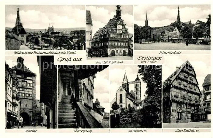 Esslingen_Neckar Rathaus Marktplatz Obertor Wehrgang Stadtkriche Esslingen Neckar postalisch nicht gelaufen 1921-1965 Erhaltung siehe scans [KathaD81] Kathoren