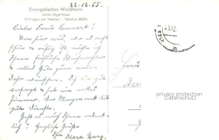 Esslingen__Neckar Ev Waldheim beim Jaegerhaus postalisch gelaufen 1955 Erhaltung siehe scans [FriedD77] Frierer