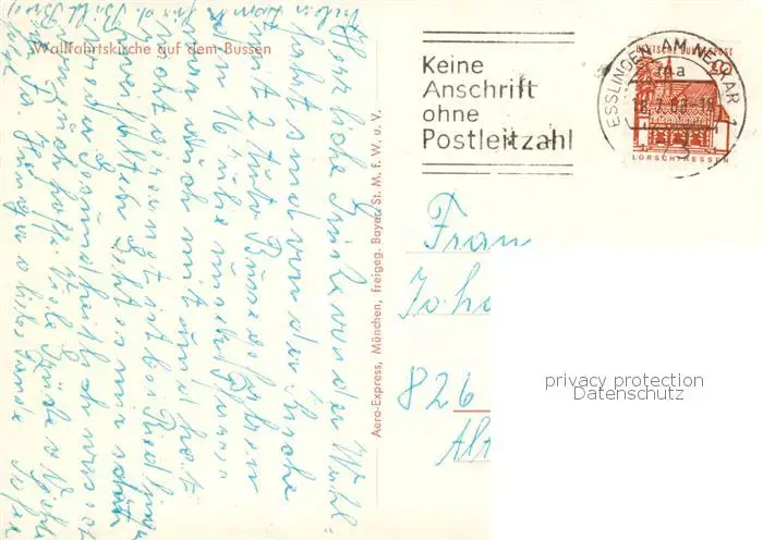 Esslingen__Neckar Wallfahrtskirche auf dem Bussen Fliegeraufnahme postalisch gelaufen 1966 Erhaltung siehe scans [WerneD78] WernPID7