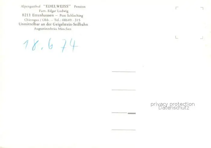 Ettenhausen_Schleching Alpengasthof Edelweiss Ettenhausen_Schleching postalisch nicht gelaufen 1974 Erhaltung siehe scans [WerneD78] WernPID7