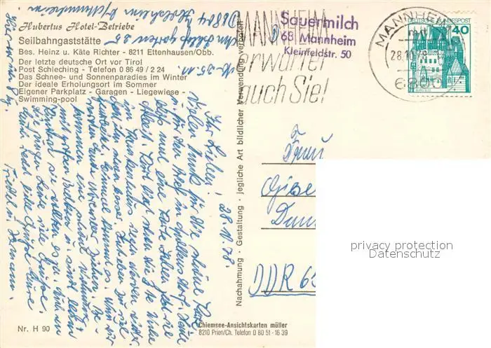 Ettenhausen_Schleching Hotel Hubertus Restaurant Bar Breitenstein Geigelstein Chiemgauer Alpen Ettenhausen_Schleching postalisch gelaufen 1978 Erhaltung siehe scans [FriedD77] Frierer